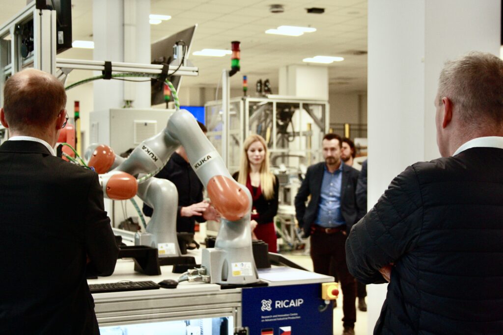 The event concluded with guided tours of both floors of the RICAIP Testbed Prague and selected CIIRC CTU laboratories. Participants visited, among others, the IMR (Intelligent and Mobile Robotics) laboratory led by Libor Přeučil’s team, where they learned about research in autonomous and vision-based robot navigation, logistics system optimisation, and intelligent object manipulation. Successful examples of transferring these technologies into industrial practice were also showcased.